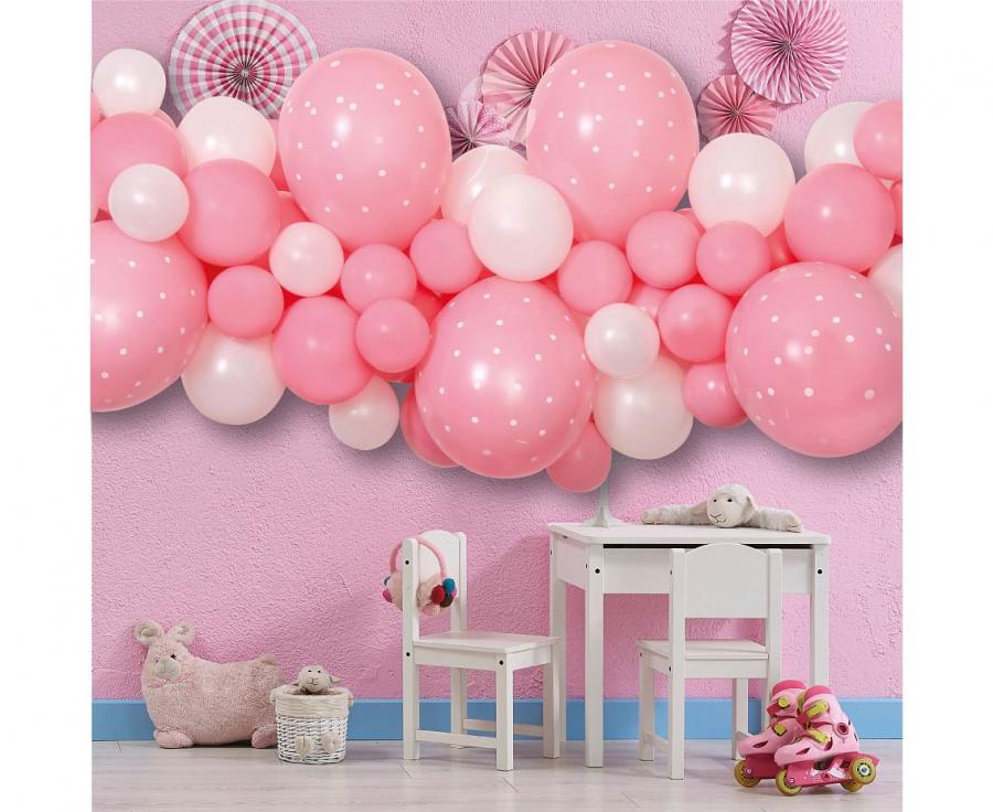 Švelnių rožinių ir baltų spalvų balionų girlianda – puikus pasirinkimas mergaitės gimtadieniui, Baby Shower ar kitai šventei, kuriai norisi suteikti švelnumo ir žaismingumo. Rinkinyje rasite net 65 balionus trijų dydžių (13 cm, 26 cm ir 33 cm) bei 3 metrų ilgio tvirtinimo juostą.